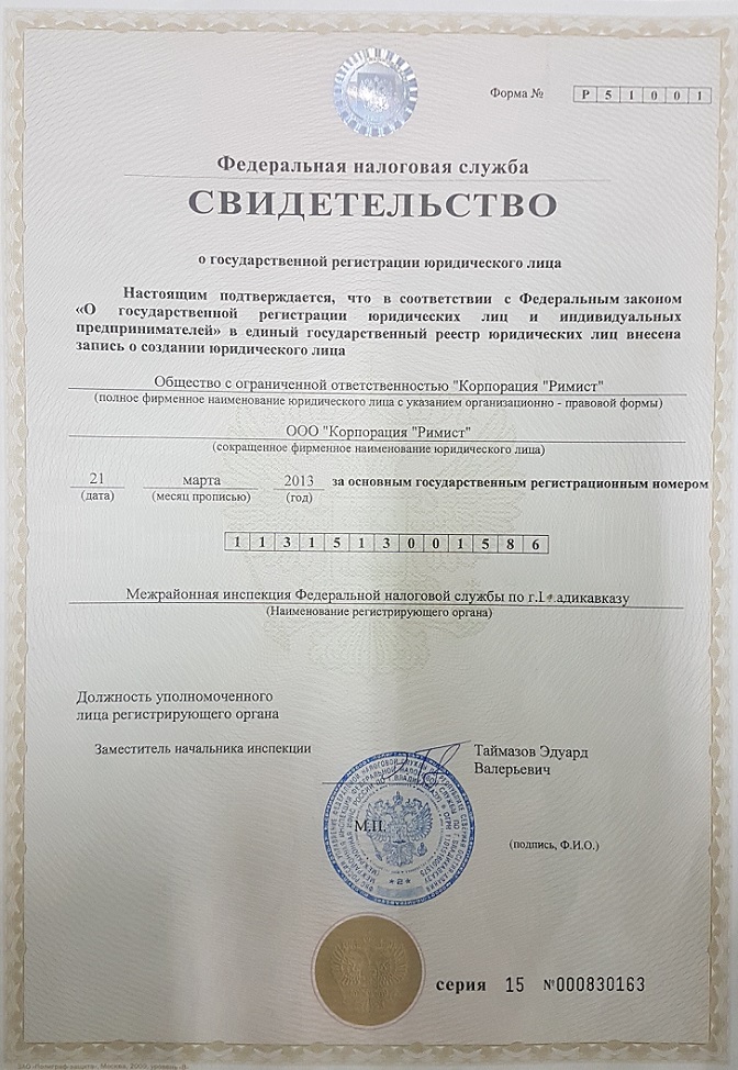 ООО "Корпорация Римист", ИНН 1513040473, КПП 151301001, ОГРН 1131513001586